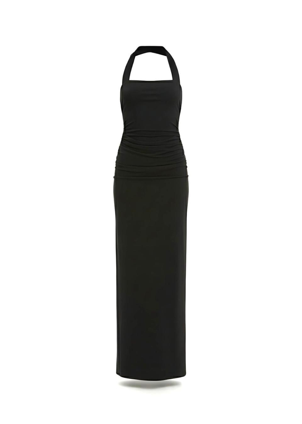 The WL Collection introduces a sleek halter-neck maxi dress that sculpts and celebrates your silhouette with refined elegance. Designed with soft ruching at the waist and a fluid stretch drape, this timeless piece offers effortless glamour with every step. The perfect go-to for evenings out, formal occasions, and events where understated sophistication is key.